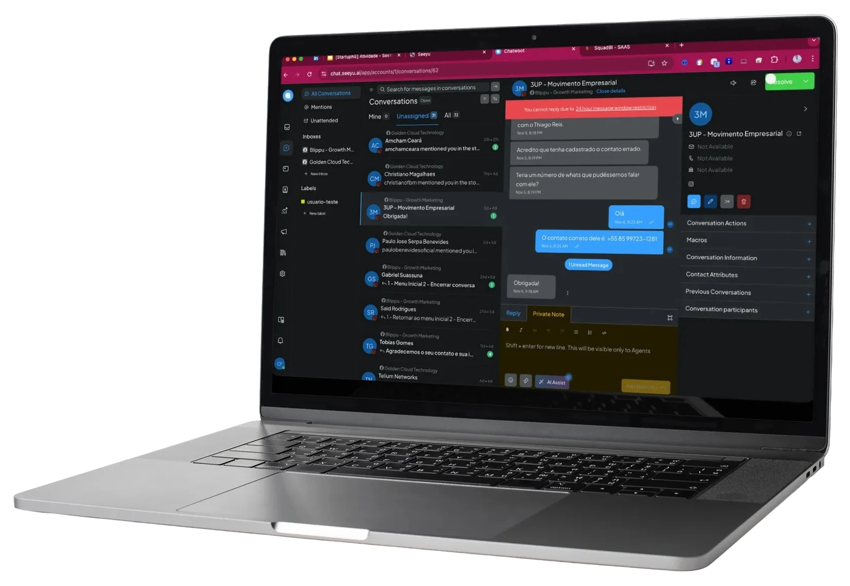 A implementação da ferramenta SeeYu em nosso WhatsApp tem promovido uma transformação significativa na maneira como atendemos o cidadão. A cada dia, sentimos a evolução no nosso serviço, cuja implantação permanece em contínuo aprimoramento. Os resultados têm sido visíveis: nosso atendimento está mais organizado, eficiente e proporcionamos uma experiência mais satisfatória para todos.