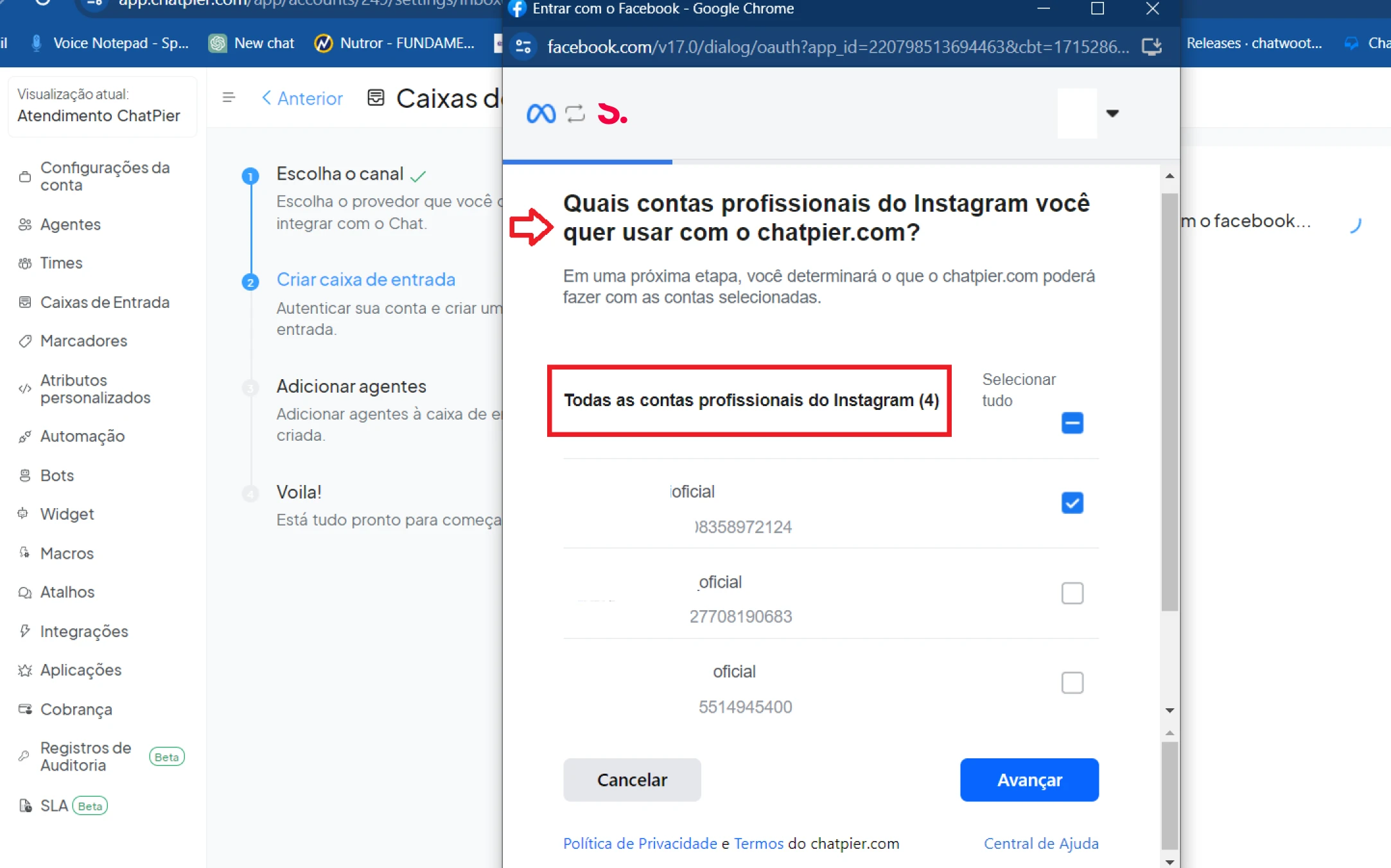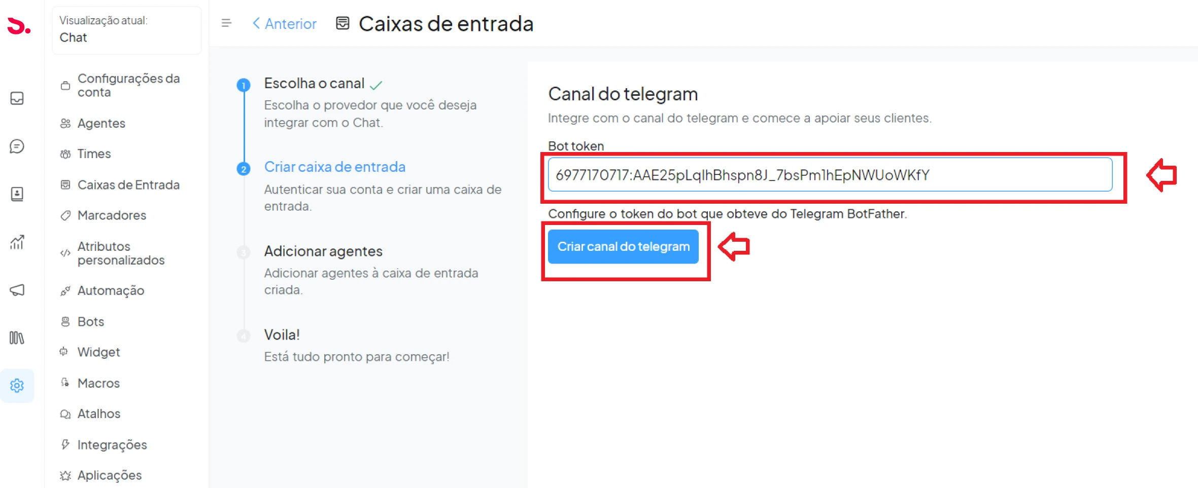 Passo 3: Escolha a caixa onde deseja adicionar o bot.![]()