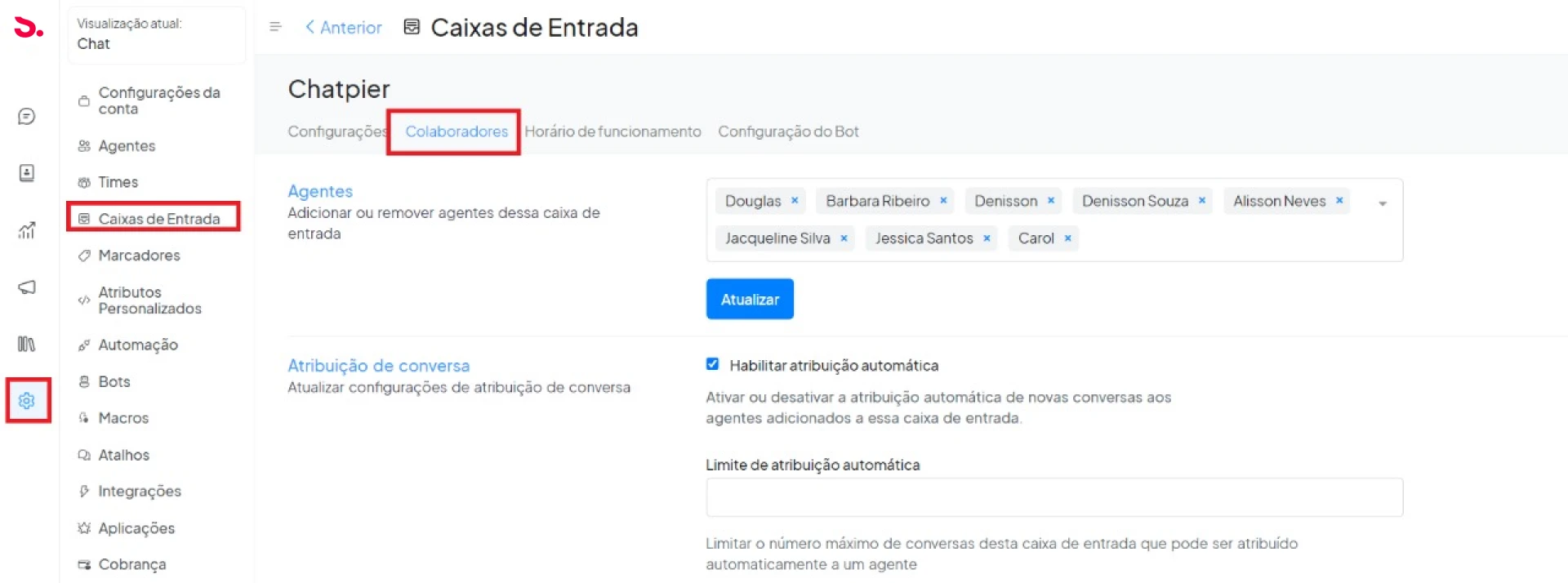Permissões de Agentes – Caixa de Entrada