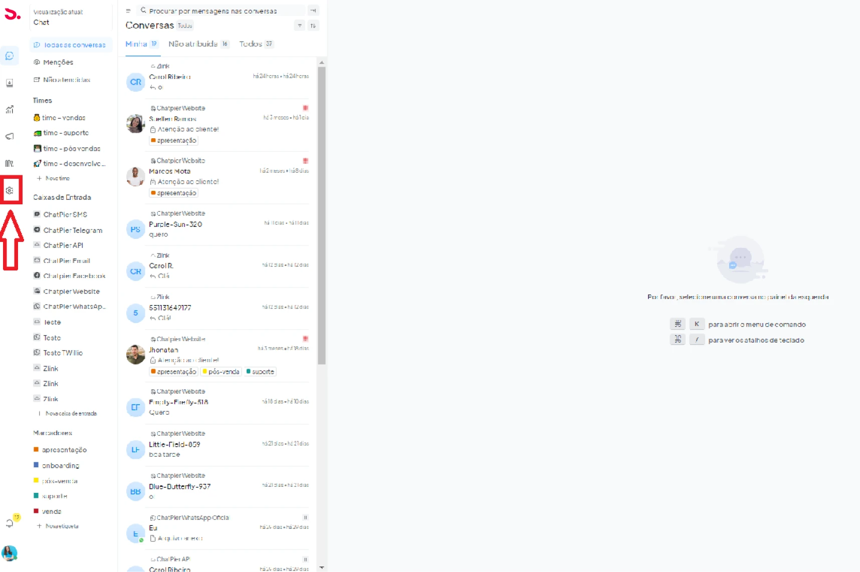 Passo 1: Clique no ícone de configurações localizado na barra lateral esquerda.