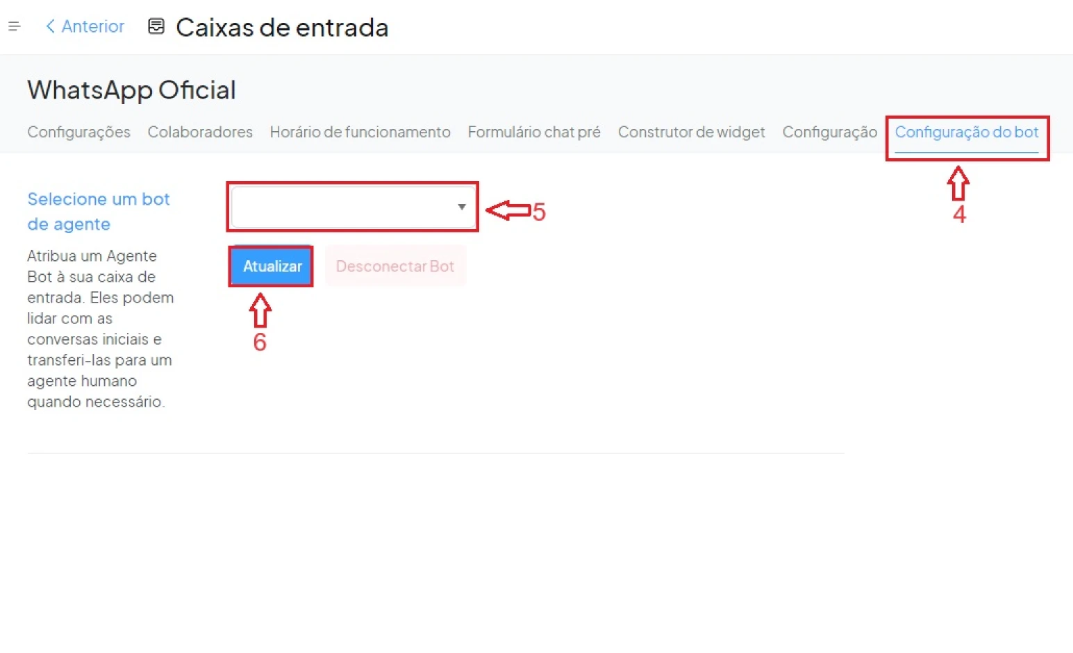 Passo 5: Clique na caixa e escolha o bot desejado.