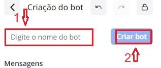 Passo 9: Após realizar todas as configurações necessárias, adicione um nome ao seu bot e clique em criar.